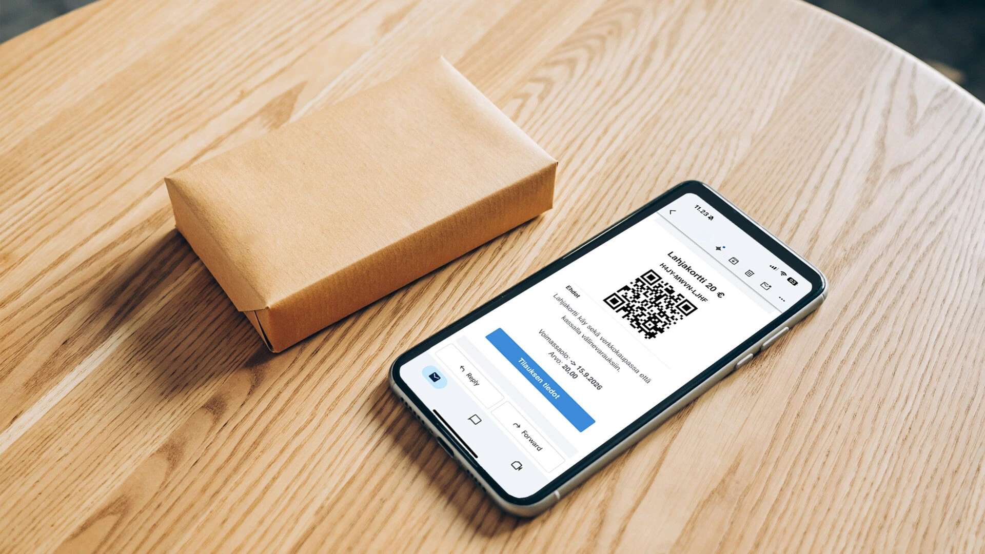 Arvoseteliin on määritelty arvo 20 €. Tämä arvo tulee lahjakortin koodille käyttöön